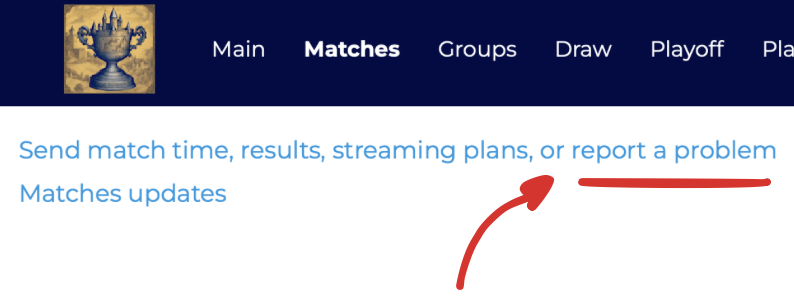 notify administrators about that by the link on the Matches page: