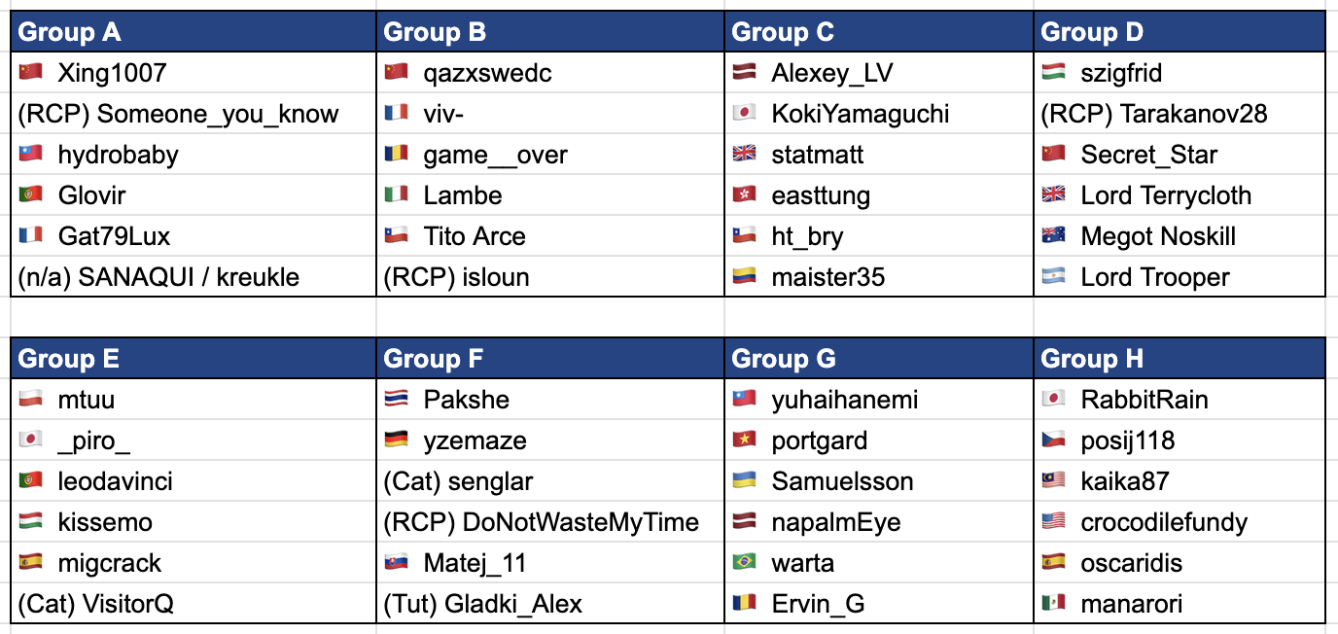 For the draw, the players will be seeded into three pots, based on ELO rating on Dec. 30th 12:00 UTC.